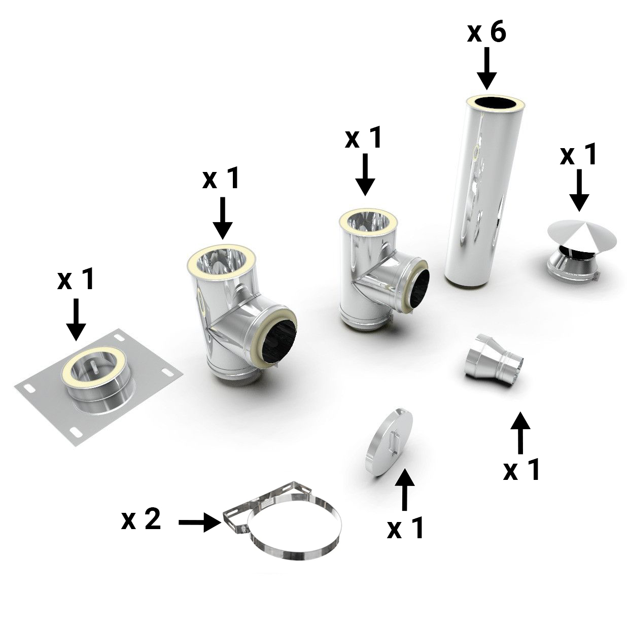 Cos de fum inox, Fornello dublu perete inox-inox, izolatie din vata bazaltica 40 mm, inaltime 7 metri, diametru interior 200 mm, pentru centrale pe lemn, carbune si peleti, complet pentru montaj