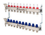 Distribuitor-Colector Fornello, echipat cu debitmetre, robineti si aerisitoare, inox, filet interior, 10 cai, 1"