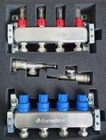 Distribuitor-Colector Fornello, echipat cu debitmetre, robineti si aerisitoare, inox, filet interior, 4 cai, 1"