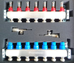 Distribuitor-Colector Fornello, echipat cu debitmetre, robineti si aerisitoare, inox, filet interior, 7 cai, 1"