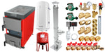 Pachet Cazan (centrala) cu plita pe combustibil solid (lemn, carbune, brichete), Fornello Rustic KP 20 kW, Cos inox, Pompe, Boiler, Vas expansiune, Fitinguri montaj