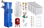 Pachet Cazan (centrala) pe combustibil solid, tip lumanare Fornello Turbo 35 kW, Calorifere Aluminiu Fornello Alvo, Boiler, Vas Expansiune, Pompa, Fitinguri Montaj