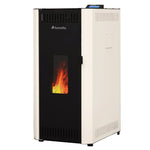 Termosemineu pe peleti Fornello CALORE COMPACT 25 kW, pompa electronica, vas expansiune, arzator inox, grup de siguranta, sistem de curatare MECANICA a creuzetului si drumurilor de fum, culoare alb
