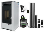Pachet complet pentru incalzire cu control de la distanta format din Semineu (Soba) pe Peleti cu aer cald Fornello Air SmartPell 11 KW, culoare White, termostat ambiental Salus IT 500, aspirator de cenusa si kit de evacuare 2,5 metri