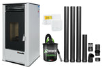 Pachet complet pentru incalzire Semineu (Soba) pe Peleti cu aer cald Fornello Air SmartPell 11 KW, culoare White, termostat ambiental, aspirator de cenusa si kit de evacuare 3,5 metri