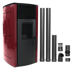 Pachet complet pentru incalzire Semineu (soba) pe peleti cu tiraj fortat Fornello Stela 10 KW, include ventilator aer cald, aprindere electrica, telecomanda, recomandat pentru 100 mp, Bordeaux, cu kit de evacuare 2,5 metri