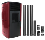 Pachet complet pentru incalzire Semineu (soba) pe peleti cu tiraj fortat Fornello Stela 10 KW, include ventilator aer cald, aprindere electrica, telecomanda, recomandat pentru 100 mp, Bordeaux, cu kit de evacuare 3,5 metri
