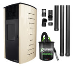 Pachet complet pentru incalzire Semineu (soba) pe peleti cu tiraj fortat Fornello Stela 10 KW, include ventilator aer cald, aprindere electrica, telecomanda, recomandat pentru 100 mp, Ivory, aspirator de cenusa si kit de evacuare 2,5 metri