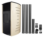 Pachet complet pentru incalzire Semineu (soba) pe peleti cu tiraj fortat Fornello Stela 10 KW, include ventilator aer cald, aprindere electrica, telecomanda, recomandat pentru 100 mp, Ivory, cu kit de evacuare 3,5 metri