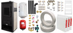 Pachet incalzire si apa calda pentru 2 camere Termosemineu pe lemne, brichete si carbune Fornello Roma E, Ivory, 22 kW, 49x45x103 cm, teava, boiler termoelectric 100l, vas expansiune, pompa circulatie, kit evacuare, calorifere si fitinguri