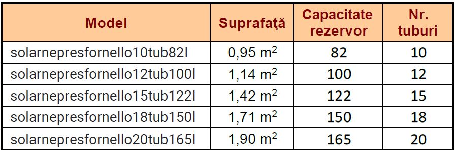 1. Panou solar nepresurizat Fornello pentru producere apa calda, cu rezervor inox 165 litri, 20 tuburi vidate;