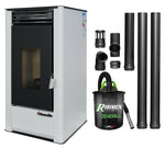 Pachet pentru incalzire Semineu (Soba) pe Peleti cu aer cald Fornello Air SmartPell 11 KW, culoare White, aspirator de cenusa si kit de evacuare 2,5 metri