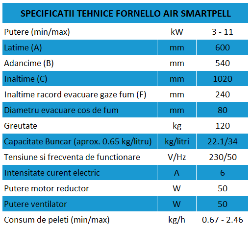 Semineul (Soba) Fornello Fornello Air SmartPell 11 KW este recomandat pentru incalzirea suprafetei unde este amplasat!