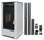 Pachet pentru incalzire Semineu (Soba) pe Peleti cu aer cald Fornello Air SmartPell 11 KW, culoare White si kit evacuare 2,5 metri