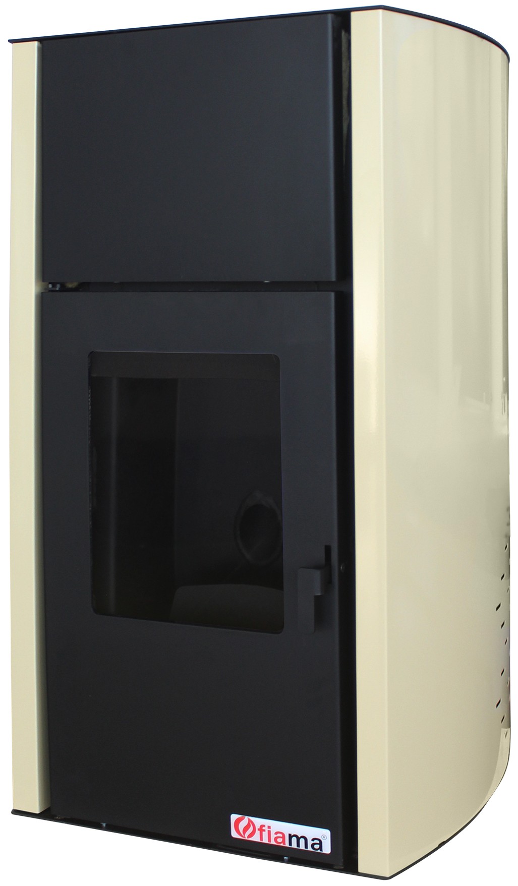 Termosemineu pe peleti Fiama Confort 18 kw, complet echipat pentru incalzire, pompa, vas expansiune, automatizare, buncar peleti 15 kg, tiraj fortat, culoare Crem, aprindere automata, pana la 120 mp