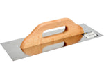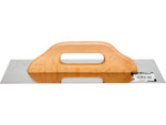 Fabricata din oțel inoxidabil, cu lungimea de 380 mm. Mânerul mare tradițional din lemn asigură manevrarea usoara a gletierei.