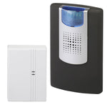Set sonerie fără fir cu semnalizare acustică și optică a apelurilor (lumină intermitentă). Extinde sistemul existent de sonerie fără cablare. Pentru a face acest lucru, emițătorul este plasat direct lângă soneria existentă. Când soneria este declanșată, semnalul acustic este convertit într-un semnal radio de către senzorul de sunet activ și trimis la receptor.