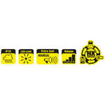 - LED roșu ca lumină de avertizare pentru bateriile descărcate în receptor transmițător rezistent la jet