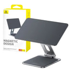 Baseus MagStable atrage atenția nu numai prin funcționalitatea sa, ci și prin designul său avansat și atent. Fabricat din materiale de cea mai bună calitate, este extrem de rezistent la uzură și oxidare, ceea ce garantează o durată de viață lungă a produsului. Balamaua dublă cu ajustare de până la 180 de grade vă permite să reglați cu ușurință unghiul tabletei dvs. Astfel, vă puteți transforma cu ușurință tableta într-un laptop! Este suficient să o așezați pe suport, să conectați tastatura și vă puteți bucura de un spațiu de lucru confortabil! În plus, un orificiu special în picior vă permite să organizați cablurile. De asemenea, nu trebuie să vă faceți griji că vă veți zgâria tableta, deoarece suportul este acoperit cu silicon moale. Ansamblul creează o soluție extrem de ergonomică și practică pentru orice utilizator.
