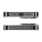 Partea din spate a carcasei este realizată din sticlă securizată, în timp ce marginile sunt din TPU moale. Datorită acestui fapt, carcasa protejează eficient telefonul împotriva daunelor cauzate de o cădere sau impact. Asigură și protecția lentilelor smartphone-ului. Mai mult, textura antiderapantă de pe margini face ca iPhone-ul să nu vă alunece din mână.