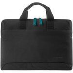 Geanta neagra Tucano Smilza Super Slim pentru laptopuri de 15,6 inchi și MacBook Pro de 16 inchi este realizată din material fabricat din plastic reciclat, cu detalii de culoare contrastantă. Un singur compartiment interior cu colțuri din neopren vă asigură laptopul. Partea din față are un buzunar exterior spațios. Mânerele duble și o curea de umăr detașabilă permit transportul confortabil.