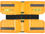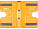 Nivela pentru colturi din plastic ABS. Are trei flacoane tradiționale pentru poziționarea precisă a elementelor structurale testate. Are o curea de cauciuc pentru fixarea la lemn sau beton și patru magneți pentru fixarea la metal.