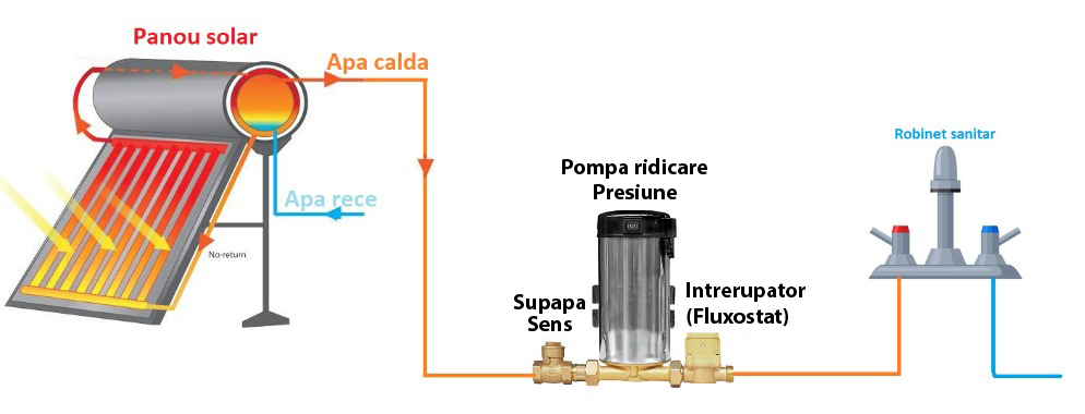 Datorita pompei, indiferent de nivelul de presiune si variatia acesteia in sistemul de conducte cu apa, este posibila cresterea presiunii si mentinerea sa la un nivel constant.