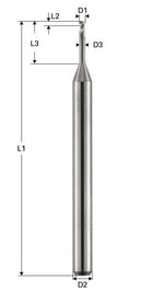Freza de adancime, Toric Cut, 2 caneluri, Datron 00781010, 1.0x1.5x3.0mm