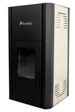 Termosemineu peleti Fornello Primo Ivory 30 kwpoate asigura incalzirea in toata casa. Pe langa aspectul placut si designul frumos, aceasta soba poate functiona ca o centrala termica pentru ca se poate racorda la calorifere. Are un rezervor de peleti ce trebuie umplut periodic. Arderea peletilor se face cu eficienta de 90 – 93% si autonomia la soba pe peleti variaza in functie de izolatia casei, temperatura exterioara si alti factori ajungand la intervale cuprinse intre 15 pana la 36 ore. Pentru o functionare buna trebuie folositi peleti de inalta calitate cu diametru de 6 mm, care sunt arsi cu un consum de 0,8 /- 3 kg/h in functie de treapta in care functioneaza.. Cosul pentru evacuarea gazelor arse are racordul de 80mm la soba si trebuie scos in exteriorul cladirii. Un grad sporit de confort este asigurat de functionarea automata si programarea saptamanala. Astfel soba pe peleti poate merge automat fara sa intervi asupra ei si poate fi programata sa porneasca si sa se opreasca. Cu ajutorul telecomenzii poti creste temperatura de ambianta stand confortabil pe fotoliu, fara sa trebuiasca sa te deplasezi.