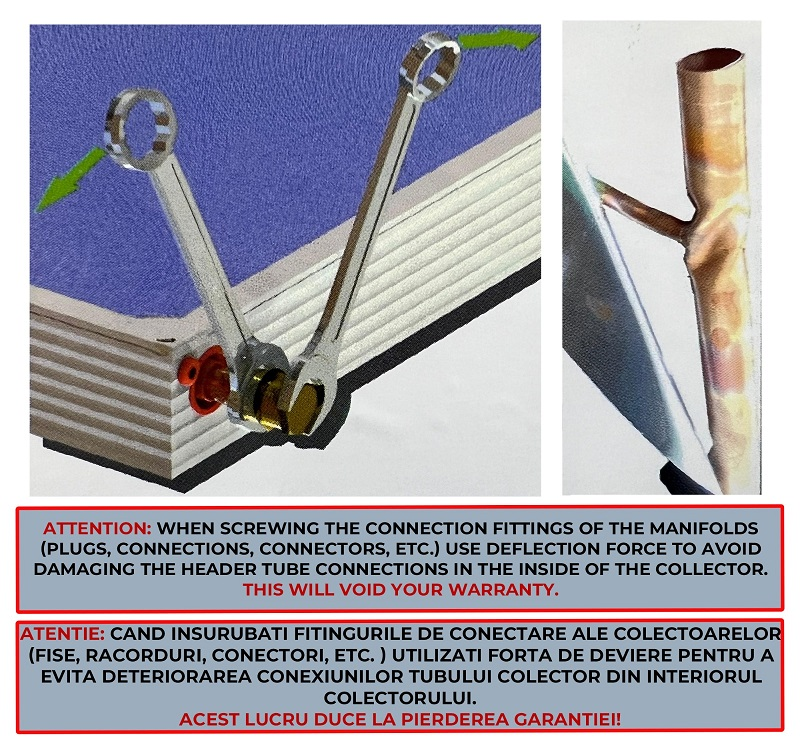 Carcasa colectorului solar este acoperita cu sticla termica prismatica speciala si etansare cu siliciu capabil sa reziste la temperaturi ridicate. Toate acestea garanteaza o fiabilitate ridicata a colectoarelor noastre solare.
