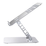 Suportul este fabricat din aliaj de siliciu durabil, care combină ușurința cu rezistența. Culoarea argintie îi conferă un aspect modern și elegant, care se îmbină bine cu diferite tipuri de interioare. Materialul nu numai că arată elegant, dar și disipă eficient căldura, ceea ce ajută la menținerea laptopului la o temperatură optimă în timpul lucrului intensiv.