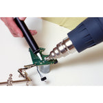 Această duză de reducere la îndemână reduce lățimea fluxului de aer până la 9 mm, creând un jet direcționat îngust. Acest lucru este deosebit de util pentru lipirea marginilor, lipirea moale și îndepărtarea vopselei în colțuri înguste.