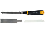 Fierăstrău manual cu trei pânze interschimbabile. Lamele se pot schimba fără folosirea unor unelte suplimentare. Mâner fabricat din două componente. Recomandat pentru lucrări de precizie și modelare.