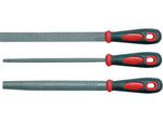 Set 3 raspile cu dinți speciali pentru prelucrarea lemnului, cu mâner din plastic. Contine raspila plata, semirotunda si rotunda