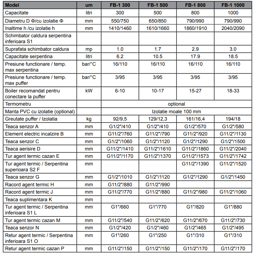 Pufferele (rezervoarele de acumulare) FB sunt fabricate din tabla de otel de calitate superioara si sunt destinate pentru stocarea apei calde necesara instalatiei de incalzire.