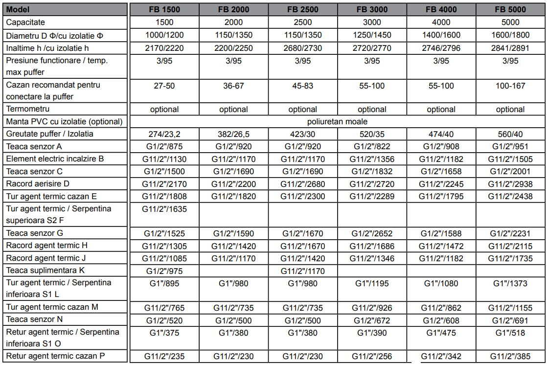 Pufferele (rezervoarele de acumulare) FB sunt fabricate din tabla de otel de calitate superioara si sunt destinate pentru stocarea apei calde necesara instalatiei de incalzire.
