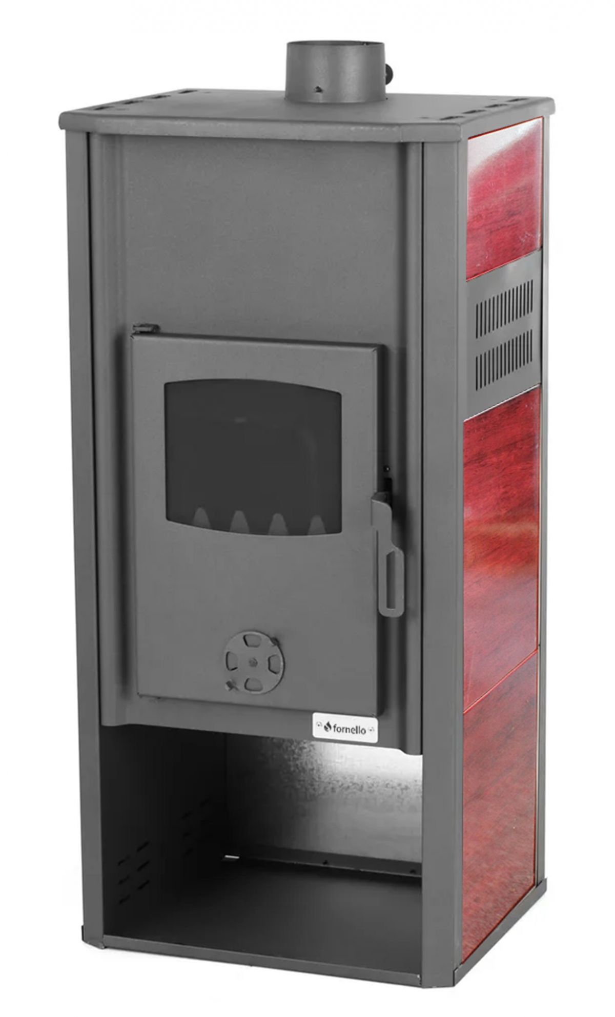1. Termosemineu pe lemne, brichete si carbune Fornello Roma E, Bordeaux, 22 kW, 49x45x103 cm
