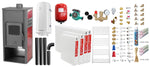 Pachet incalzire si apa calda pentru 3 camere Termosemineu pe lemne, brichete si carbune Fornello Roma E, Bordeaux, 22 kW, 49x45x103 cm, teava PPR si fitinguri, boiler termoelectric 100l, vas expansiune, pompa circulatie, kit evacuare, calorifere si