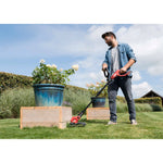 - Coasă electrică puternică „20V Max” (18 V) de 25 cm cu acumulator litiu-ion pentru cosire şi tăierea fără efort a marginilor