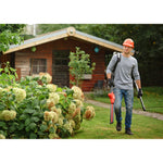- Foarfecă puternică de tuns gard viu „20V Max” cu tijă şi acumulator litiu-ion (18 V) pentru tăierea copacilor şi tufelor înalte şi greu accesibile