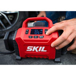 SKIL 3153 este un compresor de aer cu acumulator puternic, ideal pentru umflarea pneurilor autovehiculelor, pneurilor bicicletelor, mingilor de sport, plutelor şi saltelelor gonflabile. Scula prezintă funcţii de presiune înaltă şi de volum mare. Puteţi utiliza un acumulator „20V Max Energy Platform” sau unul de 12 VCC (putere adecvată pentru un autovehicul). Atunci când utilizaţi funcţia de presiune înaltă, pe afişajul LCD sunt indicate clar manometrul şi informaţiile referitoare la presiunea ţintă. Puteţi seta presiunea ţintă folosind butoanele. Scula se opreşte automat atunci când presiunea necesară este atinsă. Diferite sarcini de umflare necesită accesorii diferite. O caracteristică utilă a acestui compresor de aer cu acumulator este faptul să prezintă un spaţiu practic de depozitare integrat pentru diferite accesorii. Acest lucru asigură faptul că dispuneţi întotdeauna de accesoriul adecvat. SKIL 3153 CA este prevăzut cu un adaptor de valvă Presta, un ac pentru minge de sport şi un furtun de aer