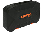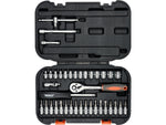 Trusa de scule STHOR este compusa din 38 elemente plasate într-o cutie de plastic. Setul include o gamă completă de tubulare de 1/4 ", biti, prelungitoare, articulație cardanică și un clichet cu 45 dinți. Această configurație face ca trusa să fie adecvata pentru lucrări de asamblare, reparații mecanice și multe alte activități de uz casnic sau atelier.