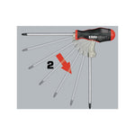 Acesta este prevazut cu un mecanism special conceput pentru a-l transforma in cel mai scurt timp dintr-un maner de surubelnita intr-unul “T” pentru a transmite forte de torsiune net superioare.