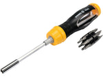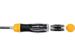 Șurubelniță cu clichet si mâner telescopic Vorel, proiectata pentru uz profesional, mânerul telescopic de 50-120 mm face mai ușor să lucrați în locuri greu accesibile. Sunt inclusi 12 biti din oțel CrV6150 de înaltă calitate.