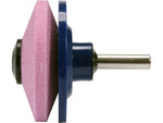 Dispozitiv de ascuțit este proiectat pentru ascuțirea eficientă a cuțitelor, coaselor, lopeților, foarfecelor de grădinărit și alte unelte de tăiere. Se montează ușor în mandrina autofiletantei sau a mini polizorului. Discul abraziv profilat din corund de crom este montat pe o tija de oțel diametrul de 6 mm. Rotatii maxime aprox. 4500 / min