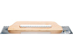 Gletiera de 580 mm din tablă din oțel inoxidabil cu dinți de 8 mm. Mânerul mare tradițional din lemn asigură manevrarea usoara a gletierei.