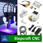 Laser pentru Stepcraft, setul complet include toate piesele necesare pentru a monta capul laser PLH3D-6W-XF pe mașina CNC Stepcraft. Setul include adaptor PLH3D-CNC, duză de aer, lentilă și ochelari de protecție de 450 nm cu certificat CE.