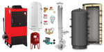 Pachet Centrala pe combustibil solid Fiama D2-25 Putere 29 kW, cu Ventilator si Automatizare, Puffer 800 litri, Cos inox, Boiler Termoelectric, Pompa, Vas