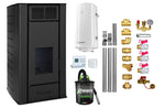 Pachet Termosemineu pe peleti Fornello SERENA W25, 25 kw, culoare Black, complet echipat, pompa circulatie, vas expansiune, automatizare, kit evacuare 3.5 ml, Boiler Termoelectric Fornello 100 l, Termostat Computherm Q3 RF, Aspirator Cenusa si kit mont