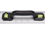 Rigla din aluminiu, 1000 mm lungime, cu mâner și două flacoane. Marcată cu o scară de milimetru și inch. Lățimea rigleli 60 mm, grosimea de 3 mm.